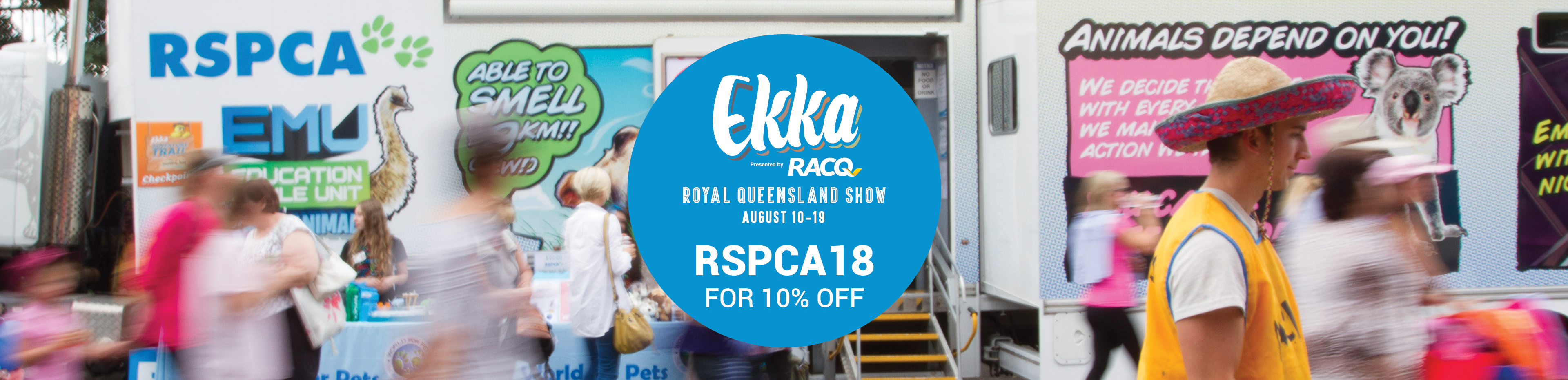 This year you can purchase your Ekka tickets here with code RSPCA18 to receive 10% off. Terms and conditions apply: 10% Off Discount applies to full priced general admission tickets. Offer excludes 10 Day Pass, Ride Cards and Food and Drink Cards. Discount cannot be used in conjunction with any other offer. Valid until 11:59pm AEST Thursday 9 August, 2018.