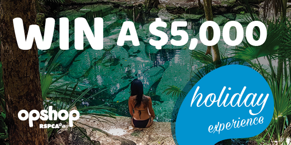 Until June 30, head to any of our 14 RSPCA Op Shops in Queensland, spend $20 or more in any one transaction and enter the draw for your chance to WIN a $5,000 Holiday Experience.